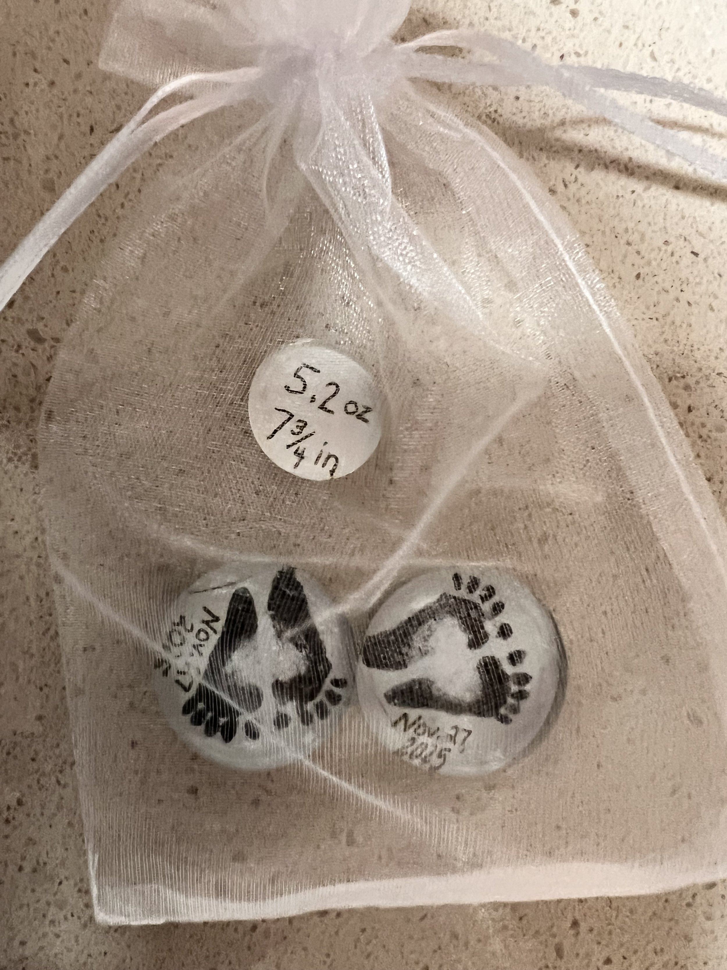 If you have footprints they can be sized down and placed on stones that you can carry with you as a sweet reminder of your little one.